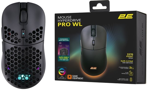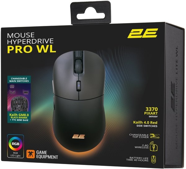 Игровая мышь 2E Gaming HyperDrive Pro WL, RGB Black (2E-MGHDPR-WL-BK)