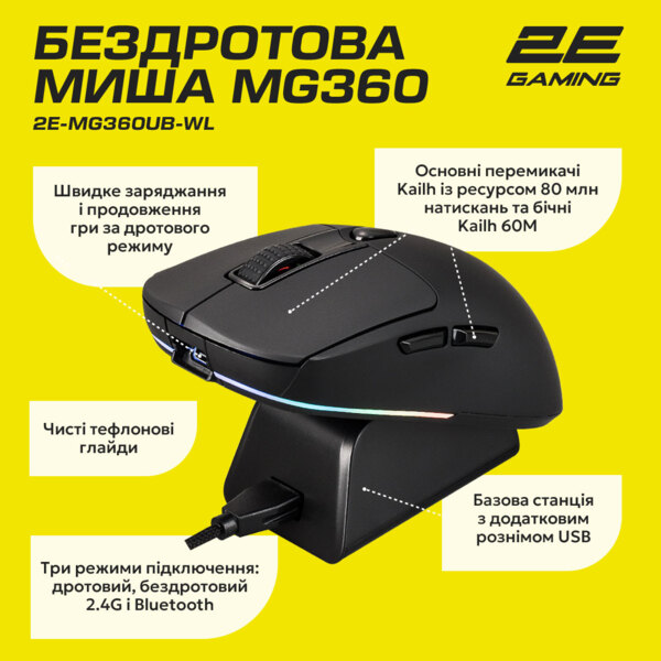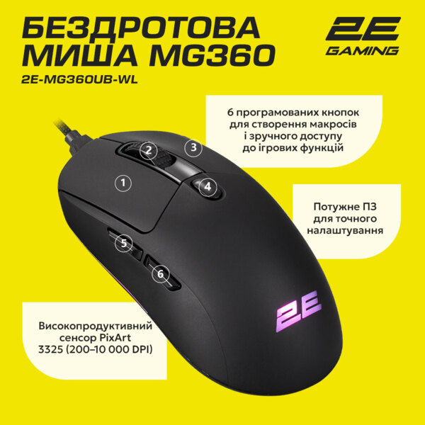 - Игровая мышь 2E Gaming MG360 WL Black (2E-MG360UB-WL)