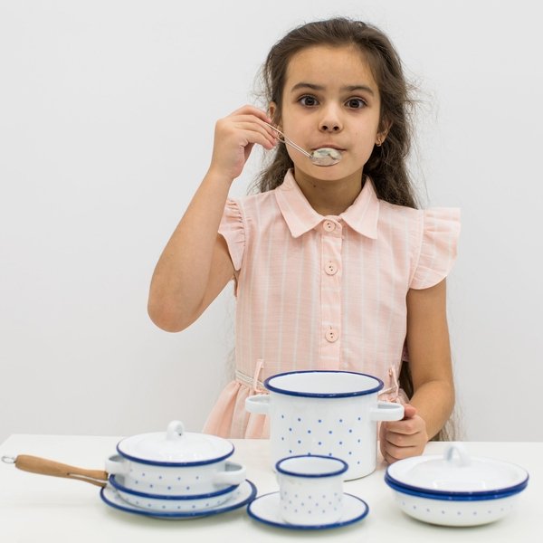 Ролевые игры не абы как развивают детей, а игра с такой реалистичной посудой еще и невероятно интересная и увлекательная. Вся посуда немецкого производителя NIC металлическая с добавлением дерева и стекла в некоторых моделях. Выглядит она совершенно как взрослая но в мини размере. Почти всю посуду можно использовать для приготовления, задействуя специальную плиту с духовым шкафом NIC которая нагревается до 40 градусов. Вся посуда безопасна для детских игр. Собирайте и вы свою коллекцию посуды NIC и пусть дети радостно учится готовить и создавать свои шедеври. Кроме всего следует помнить, что дети не только разовьют любовь к кухне, а и будут развивать моторику, логику, воображение, фантазию, сосредоточенность, социальные навыки.