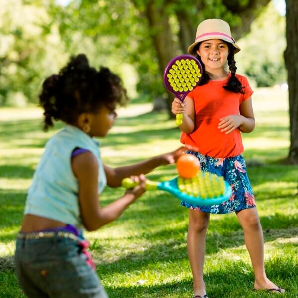 - Набор включает две ракетки и мячик.