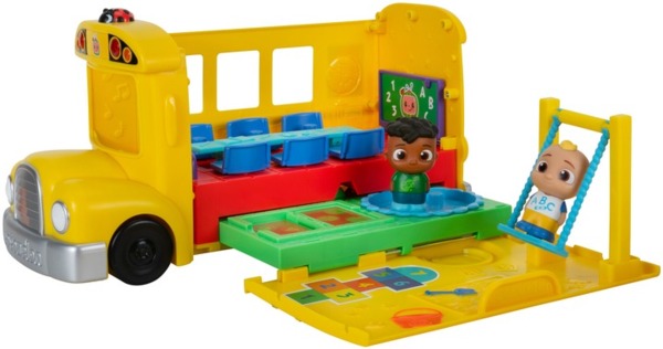 - CoComelon Vehicle Школьный автобус трансформер - уникальный игровой набор 2 в 1, который превращается из школьного автобуса в классную комнату.