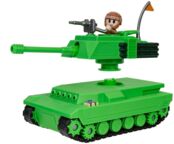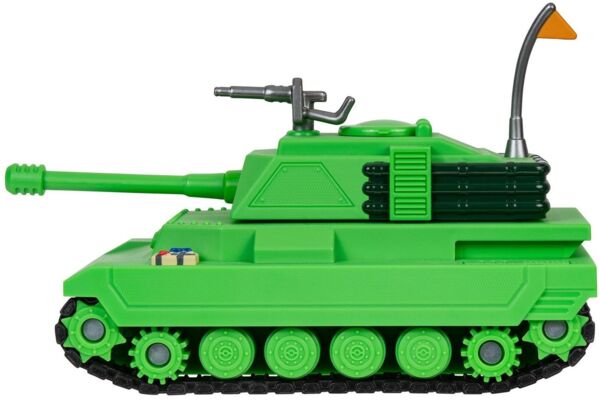 В игровой набор входит функциональный 19 сантиметровый танк с подвижными гусеницами и также вращающейся башенной пушкой, и он готов к патрулированию окрестностей города. Также в комплект входит 7 сантиметровая фигурка солдата-камуфляжника, которую можно поместить на башню, чтобы управлять танком, а когда ситуация станет совсем неконтролируемой то башня может отделиться от шасси. В набор также входит специальный контрольный список коллекционера, и эксклюзивный код виртуального предмета, который разблокирует для вашего виртуального аватара эксклюзивный предмет в виде танка.