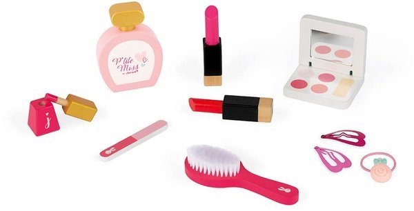 Этот деревянный туалетный столик от Janod позволяет детям от 3 лет сидеть на своем стульчике, чтобы подражать взрослым и готовиться одновременно с ними! Этот очень реалистичный туалетный столик оснащен большим зеркалом, чтобы лучше видеть себя, и ящиком для хранения вещей и маленьких секретов. Он очень практичный, имеет 3 крючка для подвешивания ожерелья и браслетов.