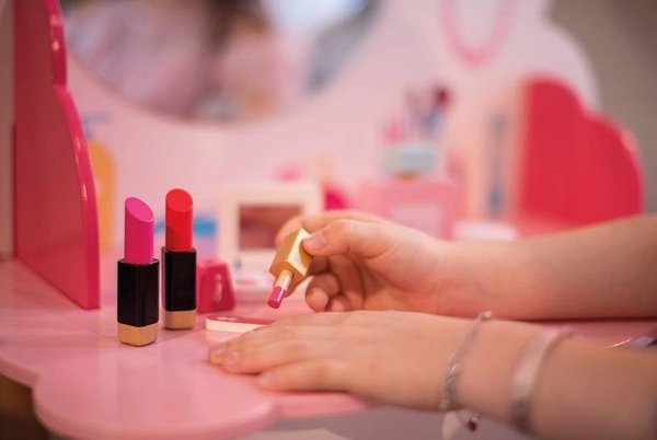 Каждое утро или вечер ваш ребенок может приобрести привычку расчесывать волосы перед туалетным столиком или класть свой секретный блокнот в ящик. В туалетный столик входит табурет и 10 косметических и парикмахерских аксессуаров: 1 расческа, 2 зажима для волос, 1 резинка для волос, 1 флакон духов, 1 палетка для макияжа, 1 пилочка для ногтей, 1 лак для ногтей, 2 помады. Высота столешницы: 52 см. Высота стула: 29 см. Материал: дерево МДФ (разрисованные куски), массивная древесина для натуральных ножек (дерево из шипов). Теплообменная печать. Поставляется не собранным. Закрытая цветная коробка с пластиковой ручкой.