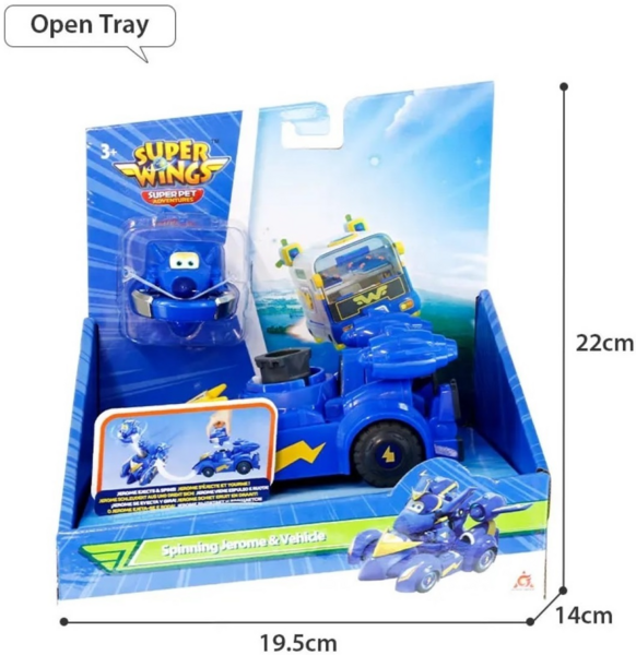 Игровой набор Vehicle Джером имеет два режима игры: режим машинки и режим игры с волчком, что очень весело и не требует элементов питания. В гостиной, парке или на детской площадке, Super Wings Vehicle всегда будет дарить супер веселье детям.
