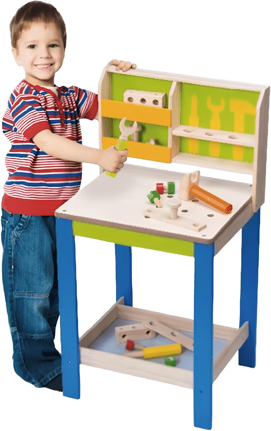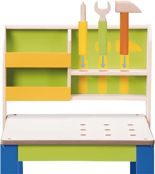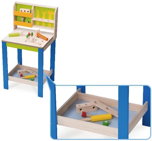 Такой подарок неизбежно будет оценен каждым будущим мужчинкой. У моего сыночка появился интерес к мастерству, каждый день новые фантазии. Столик Wonderworld способствует развитию многих навыков, все детали тщательно продуманы, расположение полочек удобно для десткого роста. Столешница средних размеров, качественно обработана.