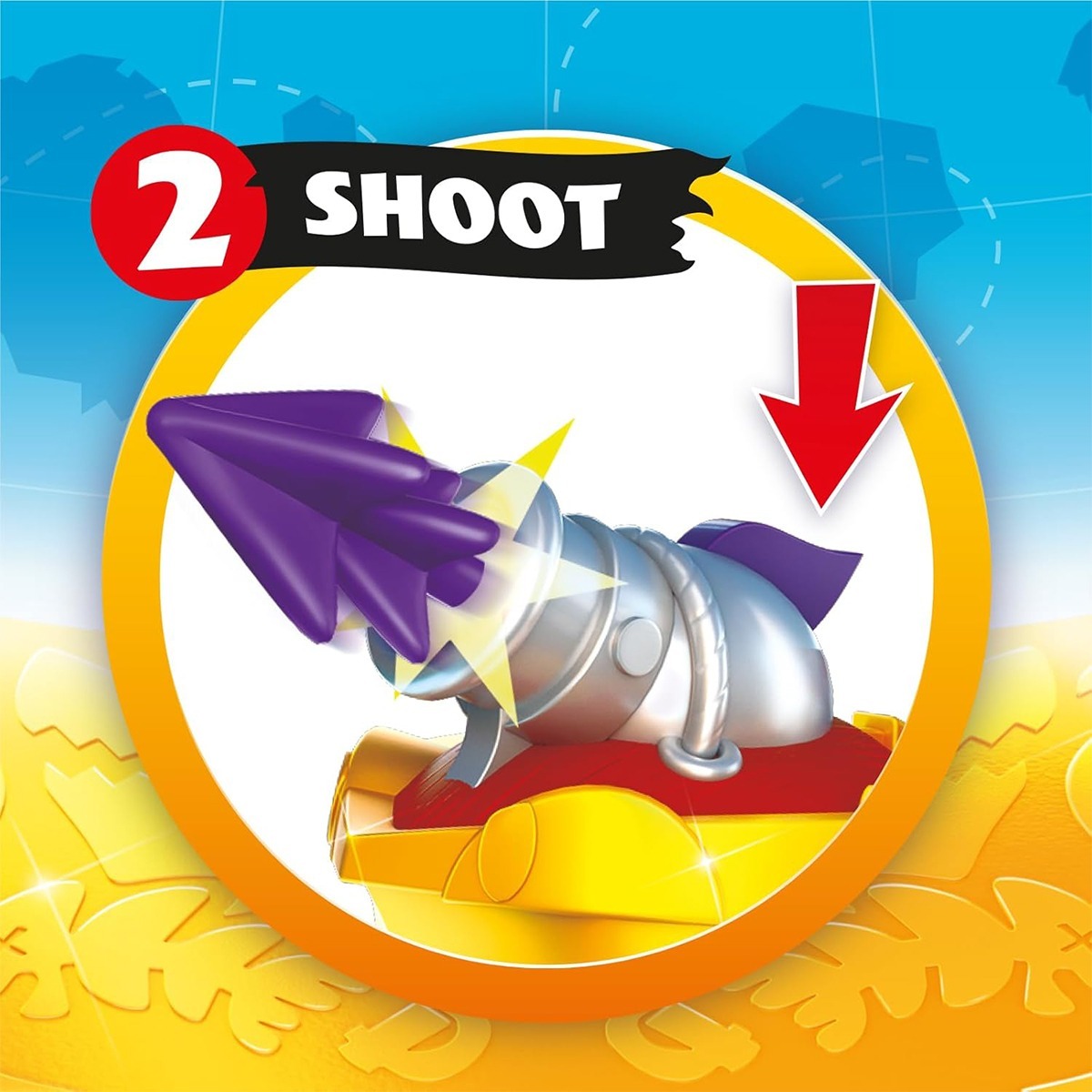 Штурмуйте крепости Пиратиксов с помощью мощной пушки на корабле. Вставьте снаряд до звука "клик" и нажмите на кнопку сверху пушки. Снаряд полетит в заданном направлении. Благодаря выступам на троне и задней части палубы вы можете прикрепить фигурки капитана и пиратов.