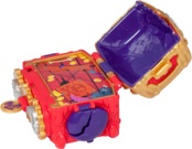 Вставьте монету в выступ внутри шестерни и начните крутить в любую сторону, чтобы совпал рисунок. Нажмите монетой на шестерню. Когда вы успешно откроете сундук, раскройте защитную бумажную "мембрану" и найдите пакет. Откройте его, ведь там будет сокровище из трех эксклюзивных пиратов с перламутровым эффектом и золотистыми аксессуарами в виде игрушечного оружия.
