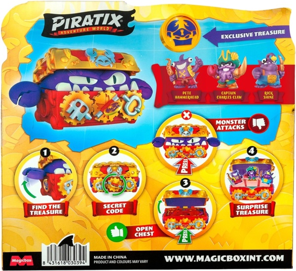 Яркие персонажи, эксклюзивные монеты и атмосфера настоящих сокровищ превращают игру в эмоциональное путешествие, где вы становитесь главным героем. Ищите, коллекционируйте, обменивайтесь с друзьями и устраивайте соревнования. Почувствуйте себя настоящим пиратом и искателем сокровищ с игровым набором Piratix S - Сундук с сокровищами. Однако, этот сундук не обычный, и сокровища внутри него очень ценные. Чтобы наконец узнать, что же там за сокровища, придется разгадать головоломку. Не медлите, разгадывайте и открывайте. Детализация сундука делает игру еще более увлекательной.