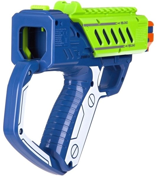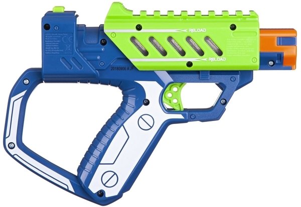 Хорошее игрушечное оружие, сделано из прочных материалов. По типу это бластер, сам по себе очень интересный, так как имеется звуковое сопровождение, а также световые эффекты. Дальность стрельбы составляет 15 метров, работает на батарейках AAA, необходимо 6 таких батареек, они, к сожалению, в комплект не идут. Бластер можно объединять с другими аксессуарами данного бренда, таким образом можно увеличить дальность стрельбы до 50 метров.