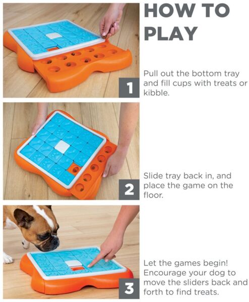 - Nina Ottosson Challenge slider - это веселая игра уровня З для собак, которым быстро скучно и нужна захватывающая деятельность, чтобы стимулировать их. Ваш щенок будет наслаждаться нюханием и лапанием для угощений, как они обнаруживают конкретные последовательные шаги, необходимые для получения вкусной награды!