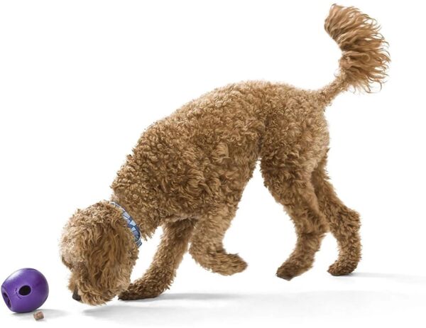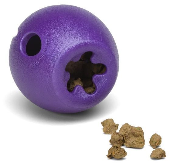 Чтобы увлечь щенков и пожилых собак, заполните Румбл небольшими гранулами, которые легко выпадают. Для любителей сложных задач игрушку надо наполнить крупными кусочками, например яблочными дольками, чтобы питомцу пришлось потрудиться, прежде чем достать лакомство.