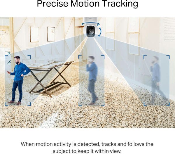 Когда обнаружено движение, отслеживает объект и следит за ним, чтобы держать его в поле зрения.