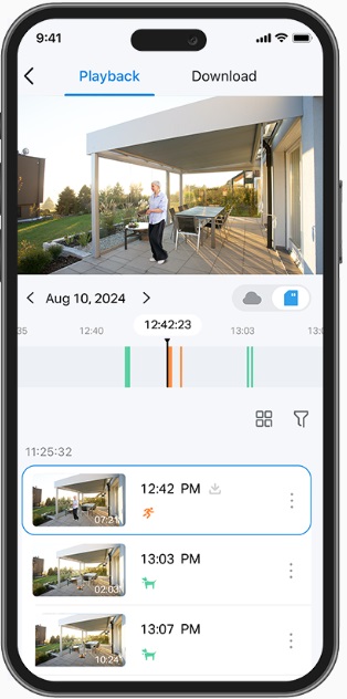 Быстро находите и загружайте интересные моменты, выбирая тип события или перемещая временную шкалу.