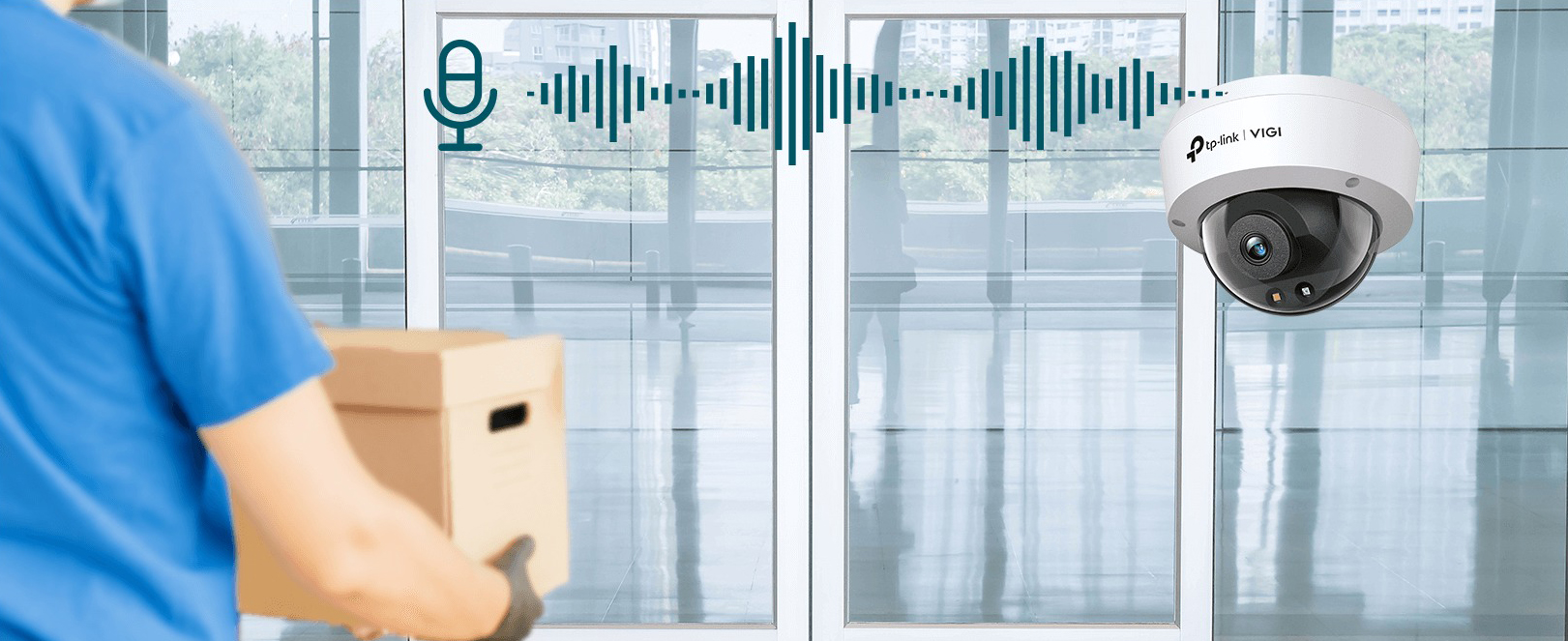 Камера VIGI имеет встроенный микрофон для записи всего, что происходит вокруг камеры. Это обеспечивает более детальный мониторинг для большего спокойствия.
