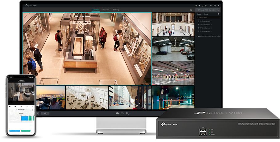 Возьмите полный контроль над своей безопасностью с помощью четырех методов управления: веб-интерфейс, интерфейс NVR, приложение VIGI и менеджер безопасности VIGI.