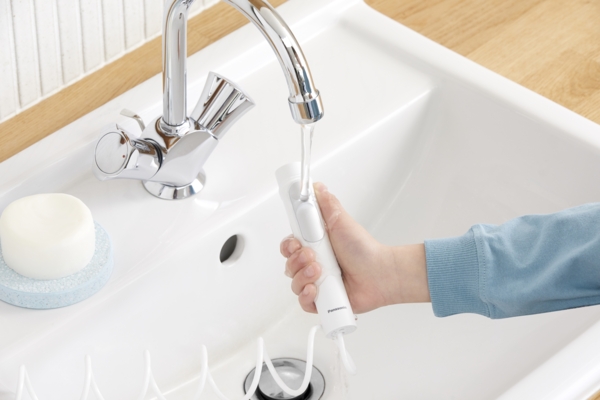 EW1614 разработан таким образом, чтобы им было удобно пользоваться и совместно использовать всей семьей. Регулируемое давление воды обеспечивает тщательный уход за полостью рта, а также делает его безопасным даже для детей.