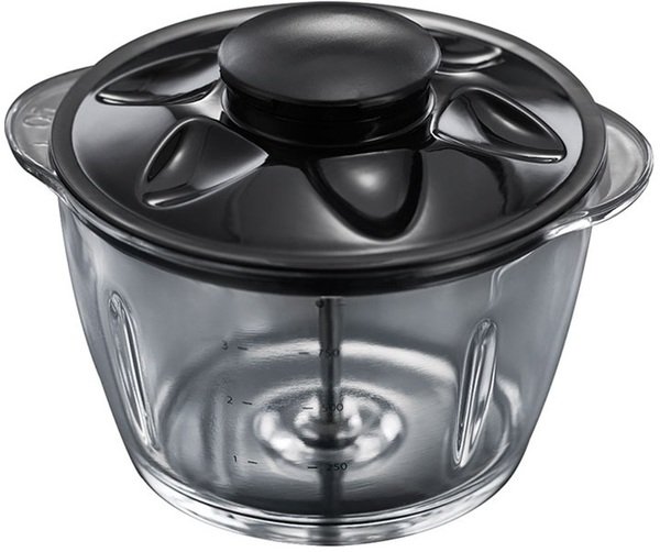 Универсальный измельчитель достаточно мощный и обладает высокой продуктивностью, что делает его универсальным кухонным прибором. Стеклянная чаша с крышкой удобна для хранения измельченных продуктов.