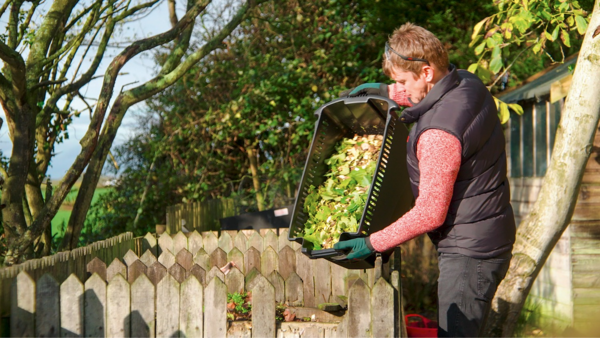 Разумно спроектированный контейнер для сбора материала объемом 53 л экономит время и количество поездок к компостной яме.
