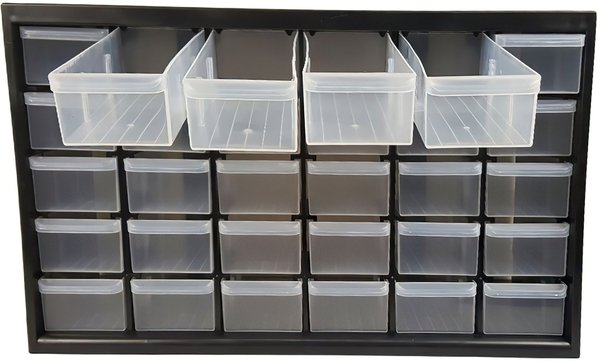 очень удобный ящик для инструментов,в нем огромное кол-во ячеек и корзинок.он очень полезен для хранения мелких деталей,не больших плат,олова для паяльника ,флюсов и т д....конечно огромные плоскогубцы не поместятся....но в целом ящик не плох