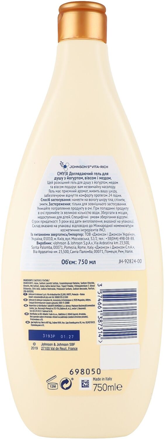 Ухаживающий гель для душа Johnson's Vita-Rich Смузи с йогуртом, овсом и медом 750мл