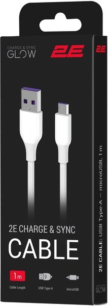 Кабель 2E USB-A - microUSB Glow 1m White (2E-CCAM-WH)