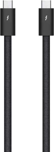 Этот кабель длиной 1 метр, выполненный в виде чёрной оплетённой конструкции, которая сворачивается в спираль, не запутываясь, поддерживает передачу данных по стандартам Thunderbolt 5 со скоростью до 120 Гбит/с; Thunderbolt 3, Thunderbolt 4 и USB 4 — со скоростью до 80 Гбит/с; USB 3 — со скоростью до 10 Гбит/с; видеовыход DisplayPort 2.1; а также зарядку мощностью до 240 Вт. Используйте этот кабель для подключения Mac с портами Thunderbolt 3, 4 или 5 (USB-C) к дисплеям и устройствам с интерфейсами Thunderbolt (USB‑C) и USB, таким как Studio Display, Pro Display XDR, док-станции и внешние накопители. Вы также можете использовать этот кабель для подключения моделей iPhone и iPad с разъемом USB-C к Mac.