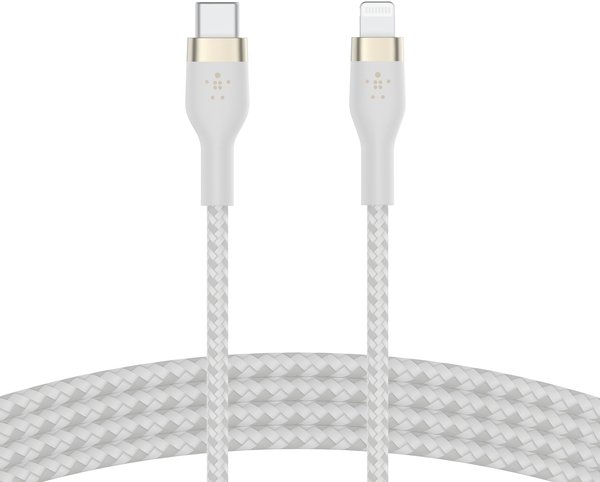 - Кабель Belkin Type-C - Lightning 1м плетеный силиконовый (CAA011BT1MWH)