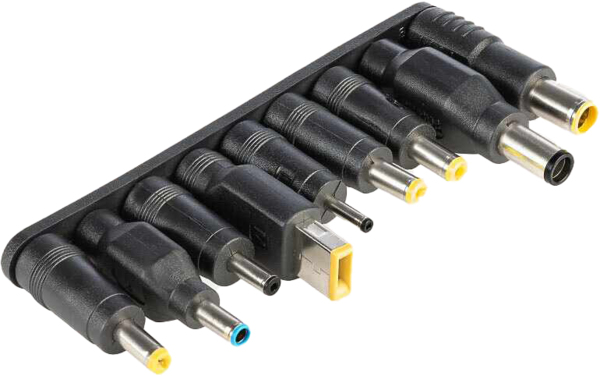 Универсальный кабель питания для ноутбука мощностью 65 Вт с выходом USB-C и DC. Совместим с зарядными устройствами, изготовленными по технологии GaN. Вы можете удобно подключить его к зарядному устройству с USB-C входом, а входящий в комплект набор из 9 разъемов позволяет использовать его с большинством ноутбуков на рынке.