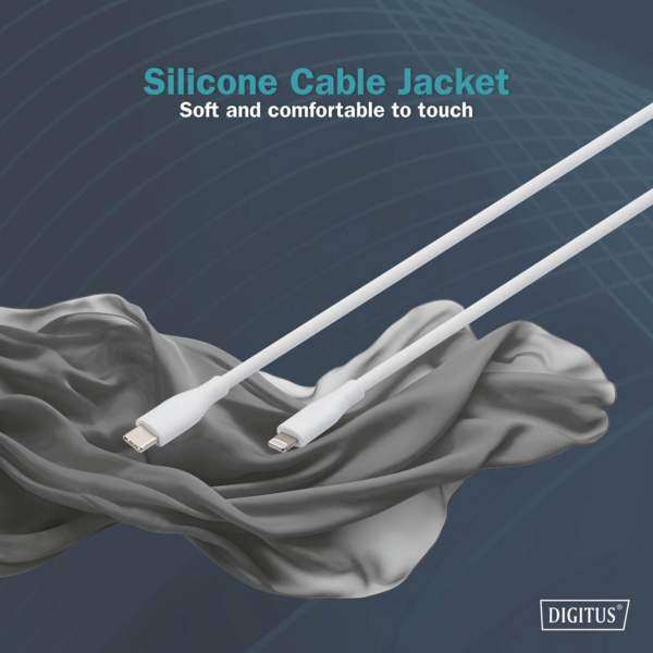 - Кабель Digitus Type-C - Lightning Data/Charge, USB 2.0, 60W, 1м, White (AK-600110-010-W)