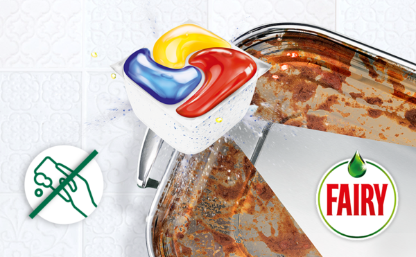 • Эффективное очищение сложных загрязнений от Fairy для невероятной чистоты посуды.