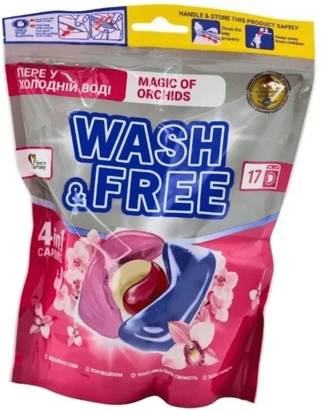 - Капсулы для стирки Wash&Free Магия орхидей дой-пак 15+2 шт