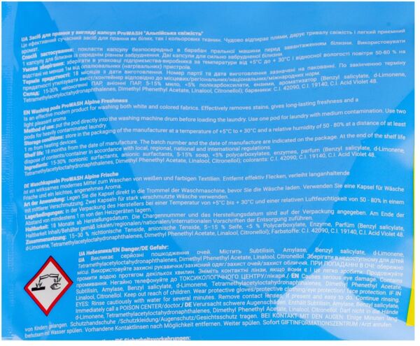Капсулы для стирки ProWash Горная свежесть дойпак 15штКапсулы для стирки ProWash Горная свежесть дойпак 15шт