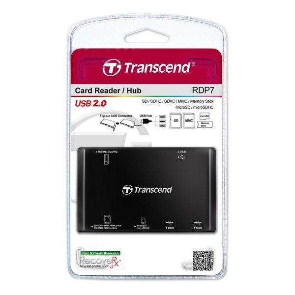 Кардридер Transcend USB 2.0 + USB HUB на 3 разъема Black (TS-RDP7K)