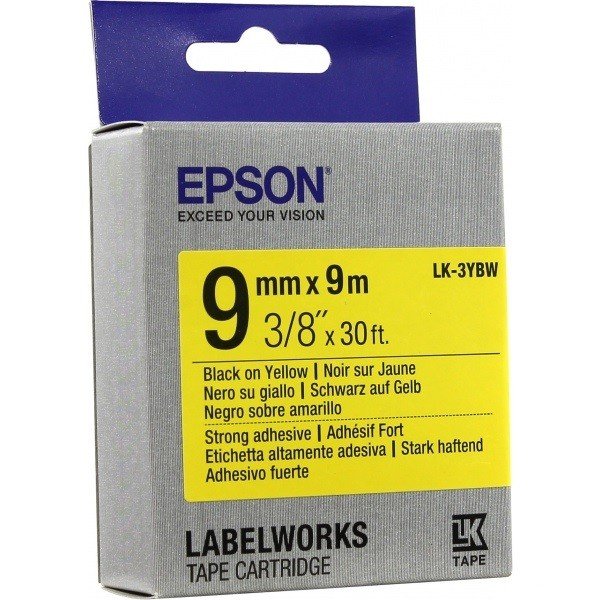 - Лента Epson LK3YBW для принтеров этикеток LW-300/400/400VP/700 Strng adh Black/Yellow 9 мм 9 м (C53S653005)