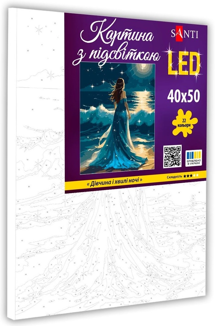 - Картина по номерам Santi Девушка и волны ночи, 40*50см, LED подсветка (955105)