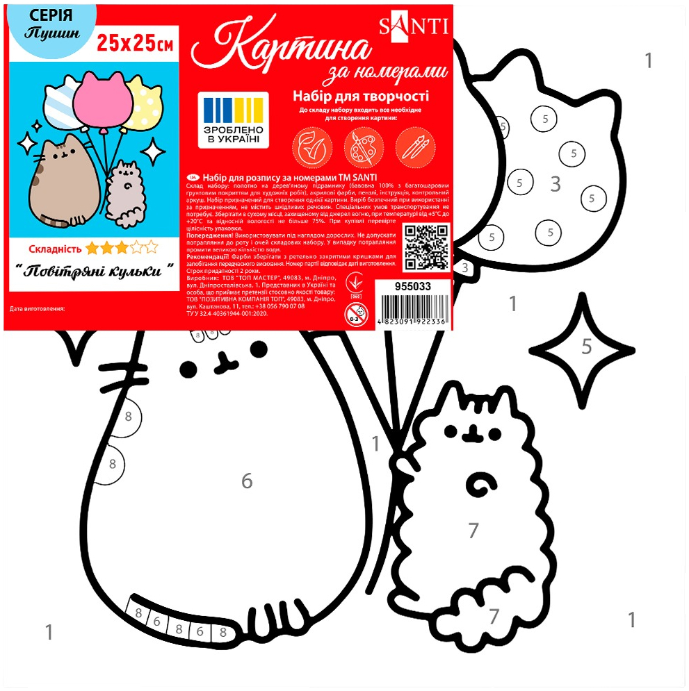 Картина по номерам Santi Пушин. Воздушные шарики, 25*25см (955033)