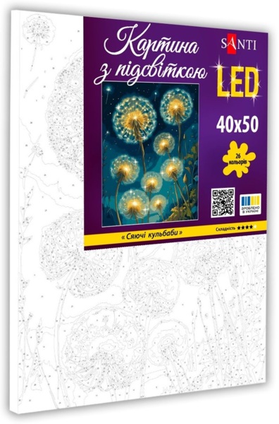 - Картина по номерам Santi Сияющие одуванчики, 40*50см, LED подсветка (955065)