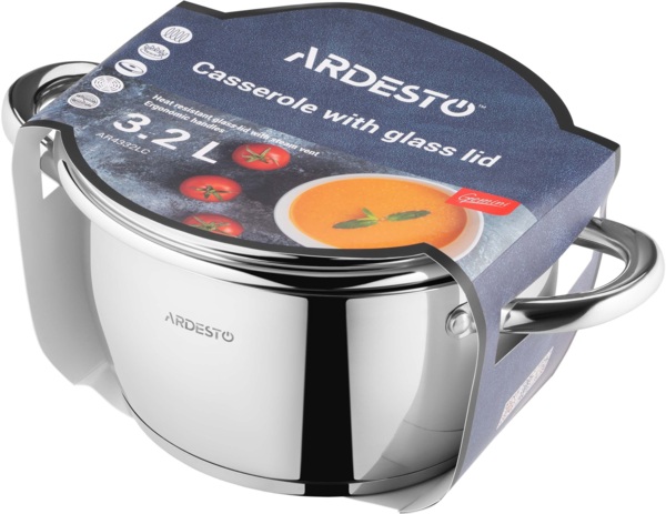 - Кастрюля со стеклянной крышкой ARDESTO Gemini Lucca, 3.2л, нержавеющая сталь (AR4332LC)