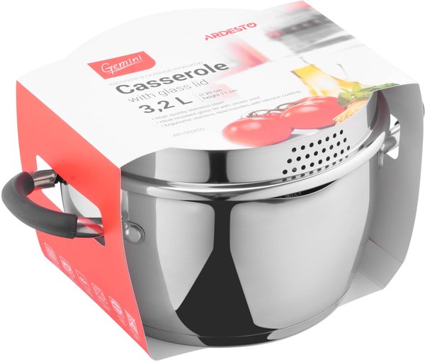 - Кастрюля ARDESTO Gemini Livorno, стеклянная крышка, 3.2 л, (AR1932GS)