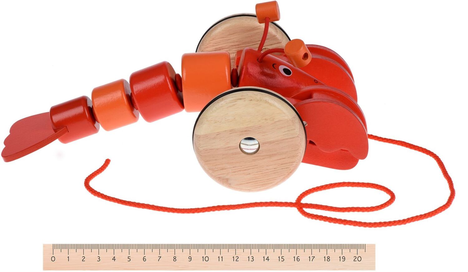 Деревянная каталка в виде лобстера от бренда goki - это яркая и увлекательная игрушка, которая обязательно привлечет внимание вашего малыша. С помощью веревочки длиной 70 см ребенок сможет приводить лобстера в движение, а во время катания забавный лобстер щелкает своими клешнями, создавая еще больше веселья. Игрушка изготовлена из высококачественных, сертифицированных материалов, безопасных для здоровья, и покрыта красками на водной основе, что делает ее не только интересной, но и безопасной. Такая каталка подарит вашему ребенку часы развивающих и активных игр, способствуя развитию координации и моторики.