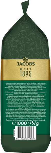Кофе Jacobs зерна Monarch, 1000гр, купаж арабика/робуста