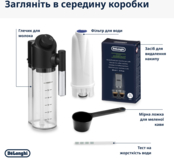 | Комплектация (возможны изменения в разных поставках) | Документация, Жидкость для удаления накипи, Контейнер для молока, Кофемашина, Мерная ложка, Поддон для капель, Резервуар для воды, Тестовая полоска для определения жесткости воды, Фильтр |