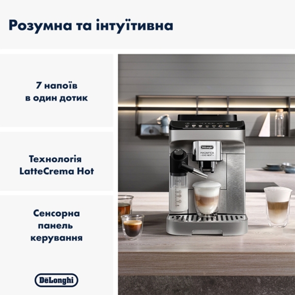 | Дополнительно | Кофемашини с капучинатором, Автоматические кофемашины, Сенсорные кофемашины, Кофемашины DeLonghi с капучинатором |