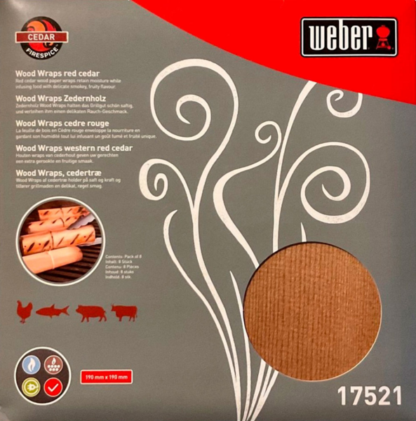 Откройте для себя новые грани барбекю вместе с новинкой от Weber – кедровыми листами для гриллинга. Просто заверните в лист из розового кедра лосося, филе индейки или мясо, и положите на решетку, как только гриль разогреется до необходимой температуры. Добавьте блюдам особенный аромат благодаря крутым аксессуарам от Weber! Идеально подходит для нежных видов рыбы, мяса и птицы.