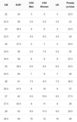 Таблица размеров