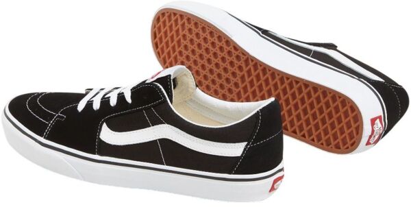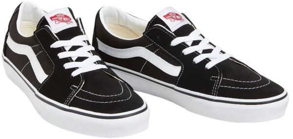 Sk8-Low, низкая версия легендарных Vans для скейтбордов, обеспечивает знакомую эстетику боковых полос, предлагая альтернативный способ ношения этого легендарного силуэта. Этот дизайн с чистыми линиями и винтажным настроением отличается прочным замшевым верхом и множеством деталей. Разработчики добавили усиленные мыски, чтобы выдержать многократное ношение, мягкий воротник для поддержки и гибкости, а также фирменные резиновые вафельные подошвы для непревзойденного сцепления. Контрастный брендинг добавляет несколько ярких красок к классическому черно-белому стилю.