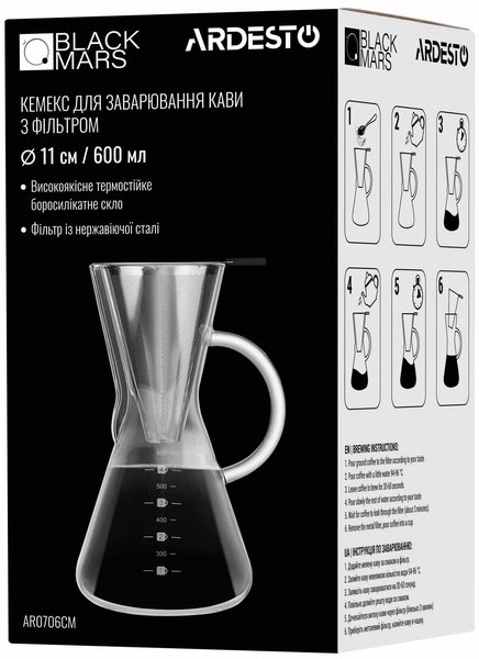 - Кемекс для заваривания кофе с фильтром ARDESTO Black Mars, 600 мл (AR0706CM)