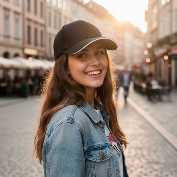 - Кепка имеет шесть клиньев и прочный изогнутый козырек с контрастной белой вставкой;