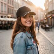 - Люверсы украшены вышивкой в тон ткани кепки;